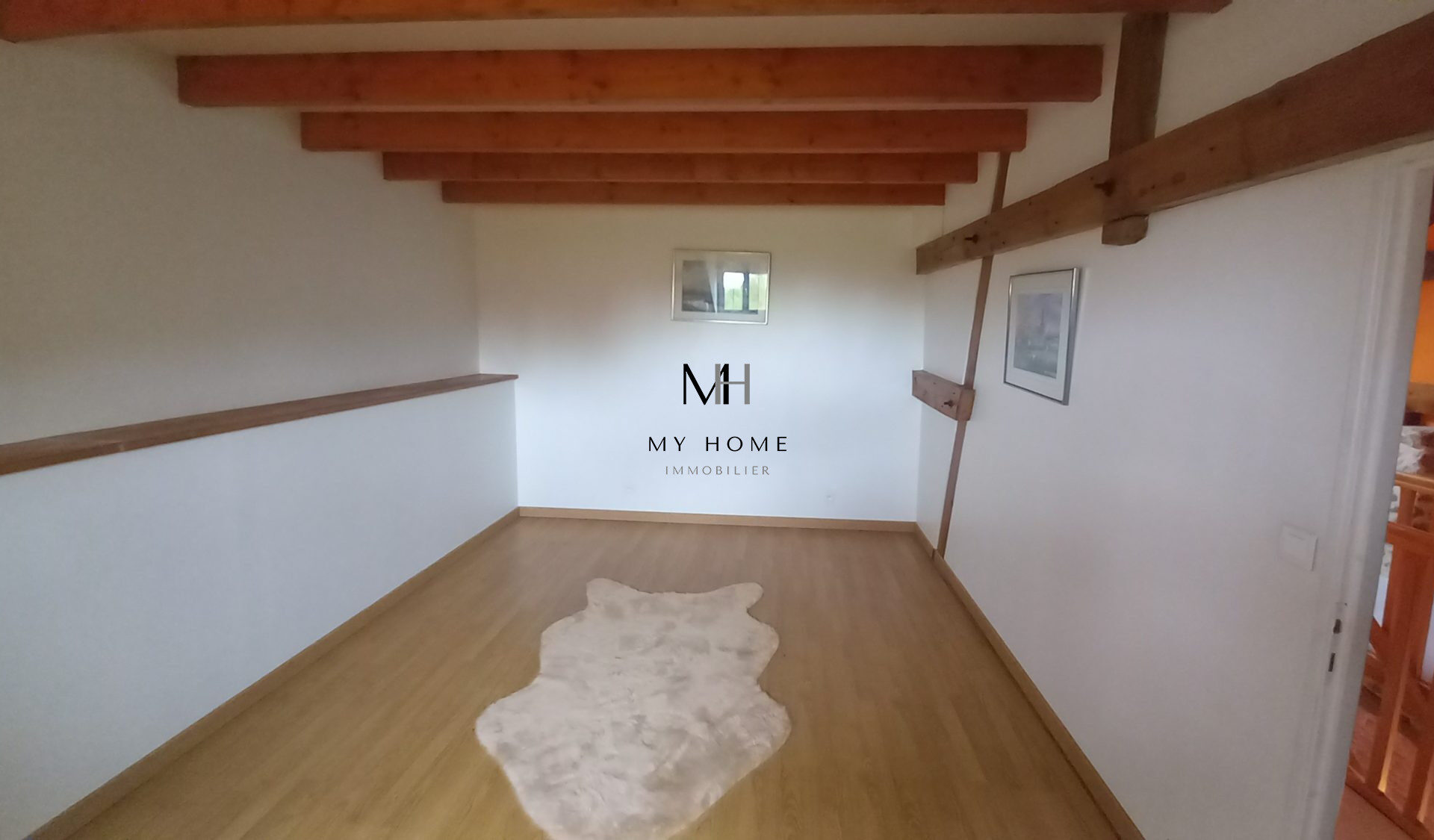 A l’étage, une superbe mezzanine desservant deux chambres, une salle de bain, un WC, un bureau et un débarras .