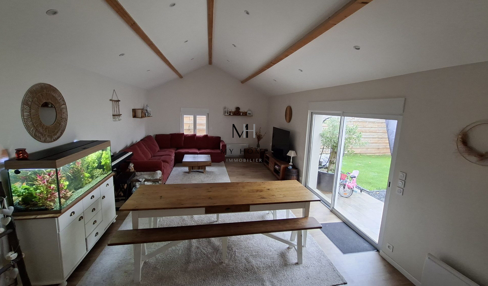 L’ Agence My Home immobilier vous propose cette jolie maison coup de coeur offrant une entrée fonctionnelle, une cuisine aménagée et équipée avec cellier, un séjour salon lumineux et spacieux, un espace salle de jeu ou salle à manger, une chambre de plain pied, une salle de douche et bain, un wc.